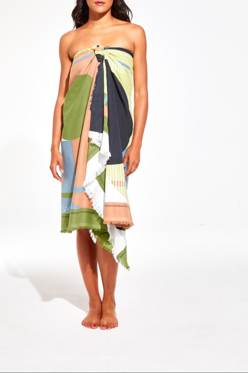 Tissé dans une qualité légère, cette serviette peut être utilisée comme paréo ou drap de plage.