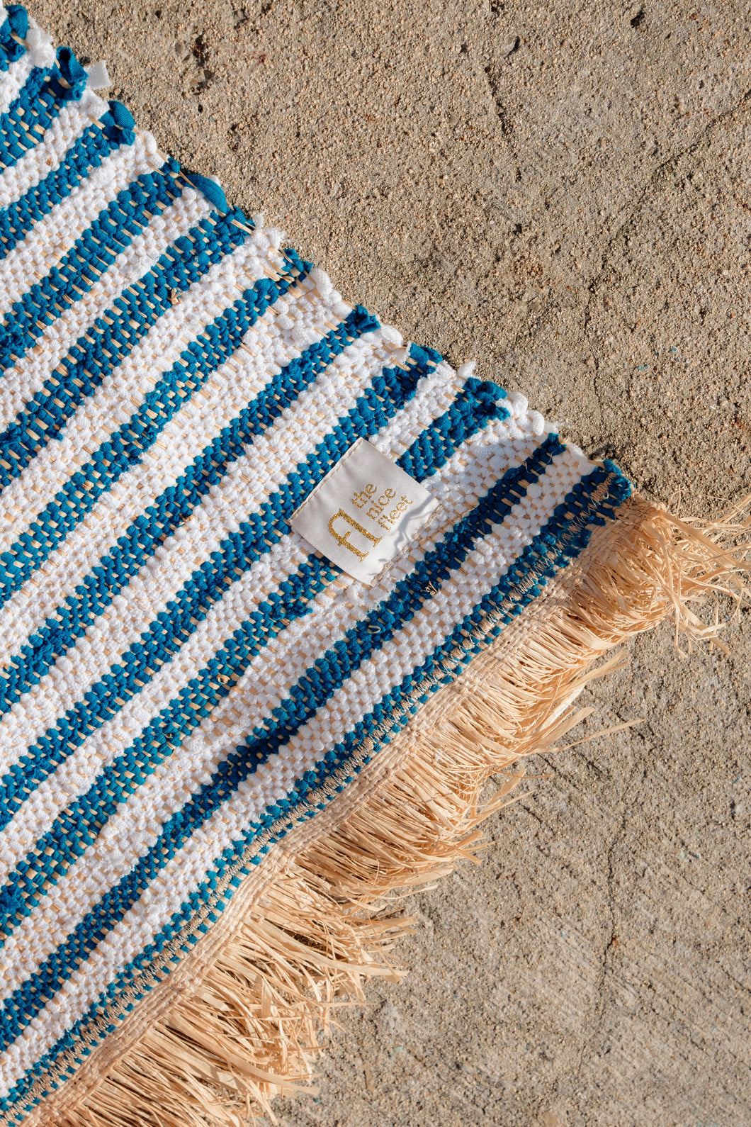 Strandmatte Nosy gestreift türkisblau Small - THE NICE FLEET